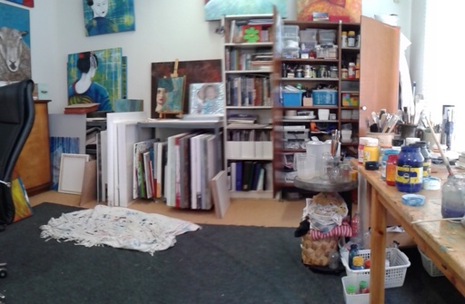 Het atelier aan de Zwolsestraat in Raalte in de oude Huishoudschool naast het gemeentehuis, een klaslokaal op de1e verdieping. (geen lift)